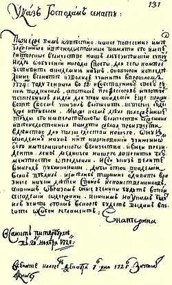 Кроме того, в рамках своей компетенции правом издания собственных указов обладали Сенат и Синод. При этом Александром I было установлено, что «указы Сената исполняются всеми, как собственные императорского Величества; один Государь или его Именной Указ могут остановить Сенатские повеления»[10].