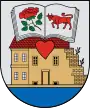Герб вместе с городскими правами дарованы королём Станиславом Августом Понятовским в 1792 году. Изображает раскрытую книгу с розой и красным тельцом, встающий из развалин дом, и символическое сердце.