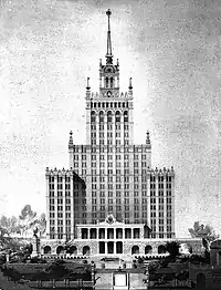 Земляные работы начались в 1954 году. А после многочисленных переделок, в частности связанных с борьбой с излишествами архитектуры, в 1955 году начали закладывать фундамент.