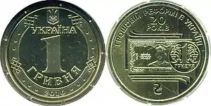 | Гривня (укр.) Hryvnia (англ.) Hryvnia (фр.) | |||||