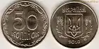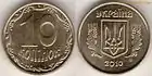 В настоящее время в обращении находятся разменные монеты номиналом 10 и 50 копеек, а также оборотные — 1 гривна, 2, 5 и 10 гривен. На аверсе монеты — герб и название государства, растительный орнамент и год чеканки; на реверсе — номинал и растительный орнамент. С 2004 года вместо монеты номиналом 1 гривна образца 1995 года выпускается монета с изображением Владимира Великого на реверсе[24]. 1 октября 2013 года в обращение введены монеты номиналом 50 копеек 2013 года чеканки из низкоуглеродистой стали с гальваническим покрытием. Монеты номиналом 50 копеек 2013 года чеканки функционируют в обращении вместе с соответствующими монетами предыдущих лет выпуска[25]. Монеты номиналом 1, 2 и 5 копеек перестали быть платежным средством с 1 октября 2019 года.