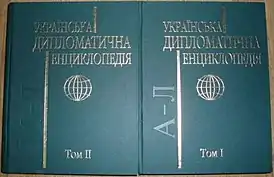 - Українська дипломатична енциклопедія / редкол.: Л. В. Губерський (голова) та ін.. — Знання України. — Т. 1. — 760 с. — 3000 экз. — ISBN 966-316-039-X.