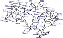Украинские железные дороги граничат с железнодорожными сетями следующих стран:[5]
