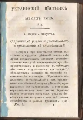 - Полякова Ю. Ю. Зарождение харьковской театральной критики (по страницам журнала «Украинский вестник») // «UNIVERSITATES. Наука и просвещение». 2005 год, № 4.