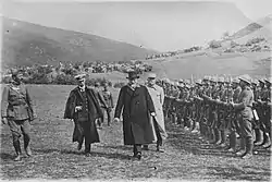 - — Подразделение греческой горной артиллерии, с приданной ему французской батареей, за расположением двух батальонов эвзонов.