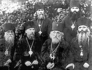 Стоят: еп. Филарет (Линчевский), еп. Афанасий (Молчановский). Сидят слева направо: еп. Сергий (Куминский), еп. Димитрий (Вербицкий), архиеп. Василий (Богдашевский), еп. Георгий (Делиев).