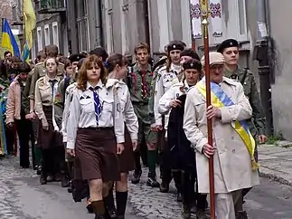 ![]() Украинский марш памяти Акции «Висла» (1947) в Польше. 3.08.1990 года верхняя палата польского парламента Сенат — осудила это насильственное переселение украинского населения |