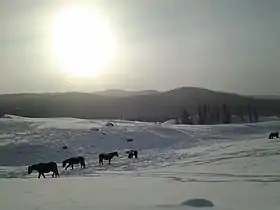 ![]() Вольный выпас коней местными жителями зимой на плато | |