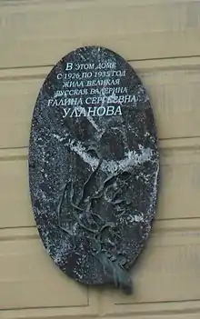 - В Петербурге открыли мемориальную доску Галине Улановой. Interfax-Russia.Ru (21 июля 2011). Дата обращения: 21 июля 2011.