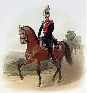 - Илл. 028. Штаб-Офицер Лейб-Гвардии Уланского Его Величества полка. (В парадной форме). 15 марта 1855 // Перемены в обмундировании и вооружении войск Российской Императорской армии с восшествия на престол Государя Императора Александра Николаевича (с дополнениями) : Составлено по Высочайшему повелению / Сост. Александр II (император российский), илл. Балашов Петр Иванович и Пиратский Карл Карлович. — СПб.: Военная типография, 1857—1881. — Тетради 1—111 : (С рисунками № 1—661). — 47×35 см.