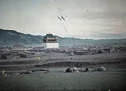 | Улица в Урге, 1913 год | Один из монастырей в городе в 1913 году | Гандантэгченлин, 1913 год | 23 июня 1913 года, общий вид на Ургу | Ворота Жёлтого Дворца в Урге |