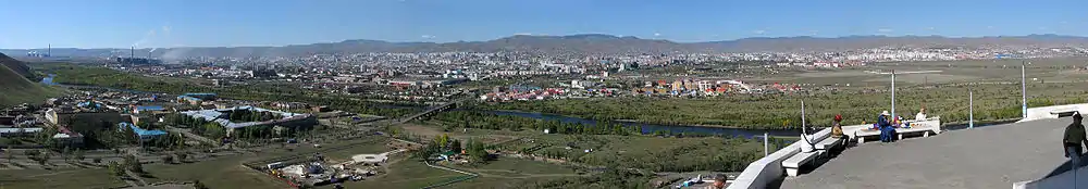 Улан-Батор расположен в долине реки Туул, притоке Орхона, на высоте 1300—1350 м[74]. Город протянулся примерно на 25-30 км в длину вдоль реки[75]. Через Улан-Батор многочисленными протоками (с востока на запад) протекает Туул[76], а также ряд её правых притоков (Сэлбэ-Гол, Улиастай-Гол, Гачуурт-Гол и др.). Административно к столице Монголии относится горный массив Богд-Хан-Уул, высотой в 2256,3 м, который и является самой высокой точкой города[77]. Площадь города во время МНР составляла 7300 км², ныне она сокращена до 4704,4 км².