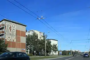 Боковые стены построенных по всесоюзной типовой серии 1-464 5-этажных жилых домов №№ 4, 6, 14 и 22 в 2009 году[9][10] было предложено взять под охрану государства как памятники культуры: их украшали панно, созданные в 1964 году известными эстонскими художниками (Оскар Раунам, Валли Лембер-Богаткина, Маргарета Фукс и Энн Пыльдрооc), при этом, однако, стена дома номер 14 к тому времени уже была утеплена, и панно «Играющие дети» закрашено[11]. Предложение не нашло отклика у властей, и к 2020 году в результате работ по утеплению фасадов в серый цвет было закрашено второе панно («Голубь и солнце»). Та же судьба может постичь и два оставшихся панно: «Гимнастка с обручем» (дом 6) и «Колхозница и рабочий» (дом 22).