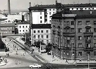 Здание в стиле сталинской архитектуры на углу улиц Лайкмаа и Гонсиори было построено в 1950-х годах.