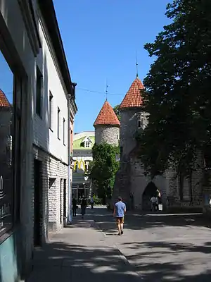 ![]() Улица Валли, в перспективе улицы - ворота Виру, справа - зелёные насаждения Мусимяги | |