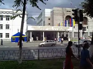 - 46 — Северо-Осетинский государственный университет имени К. Л. Хетагурова. До 1969 года Северо-Осетинский педагогический институт. Здание построено в 1937 году по проекту архитектора И. Хурумова. Является памятником истории и культуры Северной Осетии[9] и объектом культурного наследия федерального значения (код 1500000223).[10]