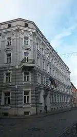 | № 9 | ![]() | Здание бывшего банка «Revaler Handels» (1878, архитектор Петер Шрейнберг). Первоначально 4-этажное, было надстроено на два этажа позже. С 1918 года здесь размещался Центральный телеграф. В настоящее время в здании работает ресторан «Чайковский» и отель «Telegraf». |