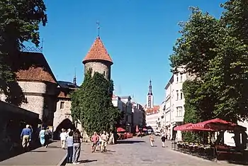 ![]() Улица Виру у Вируских ворот. В перспективе улицы - башня Ратуши | |