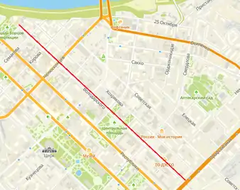 - в доме № 22 на углу с ул. Дзержинского находится швейная фабрика, основанная в 1941 г.,