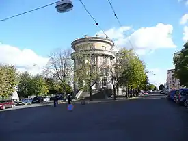 ![]() Дом красных командиров на углу с набережной Степана Разина | |