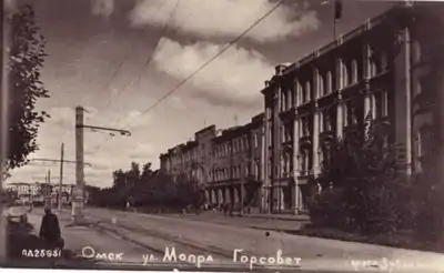 - Ул. Гагарина, 32, 34 — Администрация Омска. Бывшее здание Русско-Азиатской компании. С 1917 года Сибкрайгосторг. Фотографии здания в начале XX и в наши дни можно посмотреть по ссылке [12].