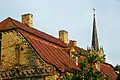 Крыша дома с улицы и кирха