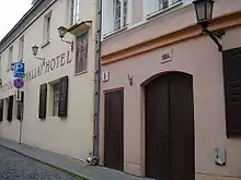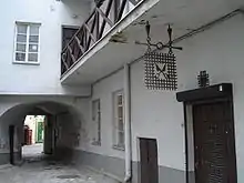 На соседнем доме (Gaono g. 3), часть которого занимает магазин обуви, висит таблица с планом вильнюсских гетто и мемориальная доска, отмечающая место, где в 1941 году были ворота «Малого гетто». Этот дом принадлежал виленскому почтамту.