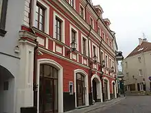 Соседнее здание красного цвета (Gaono g. 8) во второй половине XVII века принадлежало каштеляну мстиславльскому Антону Соколинскому, позднее каштеляну виленскому Михаилу Казимиру Пацу, который завещал его Яну Казимиру Воловичу и его жене Екатерине Волович. В XVIII веке владельцами дома были Фронскевичи, затем судья Стравинский, а позднее — семейство Подбереских. Здание сохранило отдельные черты архитектурных стилей разных эпох (ренессанс, барокко, классицизм, историзм) и относится к охраняемым государством объектам культурного наследия (код в Регистре культурных ценностей Литовской Республики 1098)[8][9]. Здание страдало от пожаров, подвергалось многократным перестройкам и ремонтам на протяжении XVI—XIX веков, перестраивалось из трёхэтажного в двухэтажное, из двухэтажного в трёхэтажное. Дом был капитально реконструирован в 2004—2008 годах.