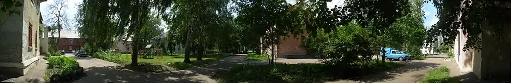 Улица застроена в основном кирпичными 2-этажными домами.