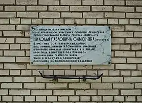 Мемориальная доска Н. П. Симоняку на стене дома 1