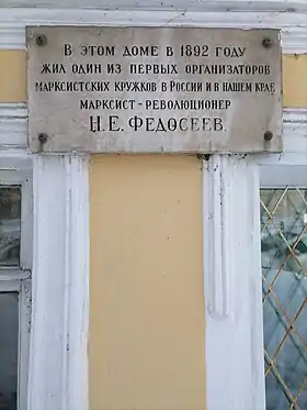 - д. 22 — Н. Е. Федосеев (1871—1898) — один из первых пропагандистов марксизма в России и руководитель первых марксистских кружков в стране (мемориальная доска).