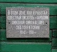 - д. 39 — Н. Н. Златовратский (1845—1911) — русский писатель (мемориальная доска)[6].