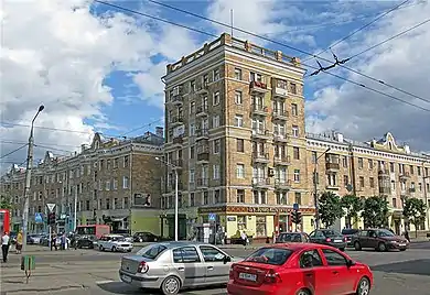 В средней части улицы находятся преимущественно дома сталинской постройки (см. иллюстрации статьи), в северной и частично средней — «хрущёвки», в южной и частично средней — более высотные жилые и прочие здания.