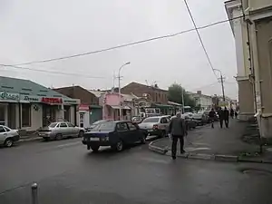 - Здание бывшего торгового дома Киракозова и Оганова на пересечении с переулком Вахтангова. Автор проекта — Е. Дескубес