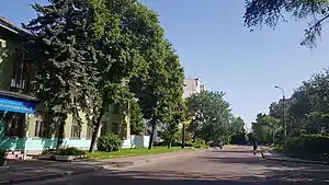 ![]() конец улицы — вид со стороны Любечской улицы | |