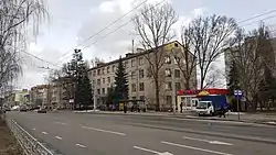 ![]() вид со стороны площади Победы. Справа историческое здание 2-этажный жилой дом № 40 | |