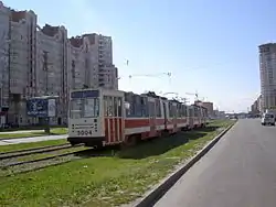 ![]() Улица Ильюшина на участке от Комендантской площади до проспекта Авиаконструкторов, вид в сторону проспекта Авиаконструкторов. 2008 год | |
