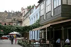 Популярный туристический маршрут[1]. Рестораны и кафе на улице имеют оригинальный стиль[2]