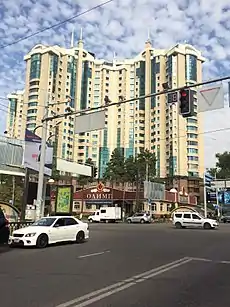 - Гостиница «Алматы». Построена в 1967 году, архитекторы И. А. Картаси и В. Чиркин.