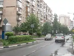 - № 3 — жилой дом (кирпич соломенного цвета, 9 этажей). На первом этаже находится аптека, отделения банка «Русский Стандарт»
