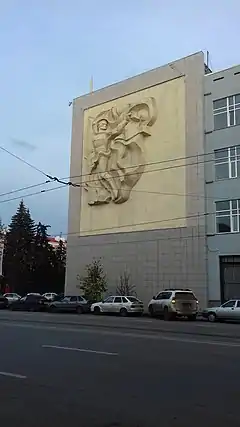Горельеф на боковом фасаде корпуса № 8 УГАТУ