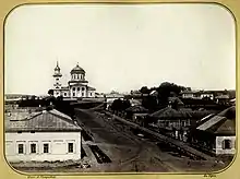 Александровская церковь и Особняк Шкапских (слева в углу) с колокольни Второй пожарно-полицейской части Уфы, ныне — бизнес-центр «Капитал», № 37 корпус 1 (фотография А. Петровой)