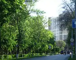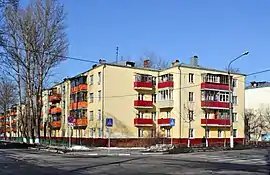 На перекрёстке с Октябрьской улицей стоит здание бывшей школы — д. 1, позднее здесь был штаб второй очереди МЖК, строившегося в 1987 году на проспекте Королева, ныне здесь располагается городская администрация.