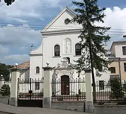 № 1. Молельный дом адвентистов седьмого дня. В бывшем монастырском здании, примыкающем к храму, устроена школа для детей с тяжёлыми расстройствами речи. Изначально храм и монастырь построены капуцинами в 1708−1718 годах. В 1785 года эти постройки были переданы францисканцам. 23 сентября 2008 году комплекс храма и монастыря внесены в перечень памятников культурного наследия, не подлежащих приватизации.