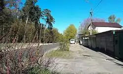 С непарной стороны застройка представлена частным сектором. С парной стороны улицы расположен Пуща-Водицкий лес.