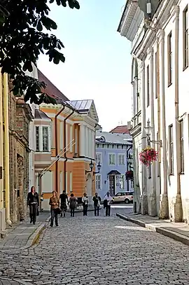 - У выхода улицы на площадь Кирику расположен бывший «Дом эстляндского рыцарства»