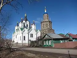 Тёплый храм Рождественского прихода, возведенный в 1850—1852 наследниками купца-откупщика А. М. Заяшникова. Выстроен вместо прежнего каменного здания. Восьмистолпный храм в русско-византийском стиле с пощипцовыми завершениями прясел фасадов, увенчанный пятью шатровыми куполами. Боковые приделы Благовещенский и Николая Чудотворца и прмч. Евдокии. Закрыт в 1940, передан под пекарню, купола сломаны. В 1990-х возвращён верующим, отреставрирован.