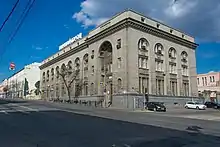 Построено в 1957 году. Скульптор В. А. Дмитриев выполнил оформление фасада здания и зала заседаний. Вместе со зданием гостиницы «Центральная» образует единый архитектурный ансамбль в начале улицы.