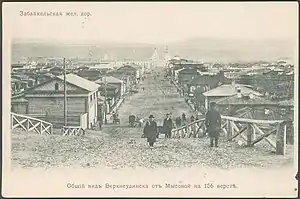 Рано поднялись. Конвой в параде. Перед городом встретила нас полиция. Народ толпился кучами по возвышенностям. На лицах — одно глупое любопытство. Комендант стоял у моста через р. Уду. По другую сторону реки, в первом доме на левой руке, с галереи смотрели несколько дам и верхнеудинских денди.