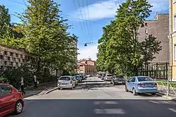 781610570980006 - Дом 19 — Дом-общежитие писателей им. В. И. Голубева. Здесь жили художник Павел Филонов и революционерка Вера Засулич[3]. Здесь также находилась квартира, где в 1916 году жили первая жена художника И. Е. Репина, Вера Алексеевна и его дочери — Вера и Надежда[4]. В настоящее время (2019) в этом доме размещается детский сад № 50.